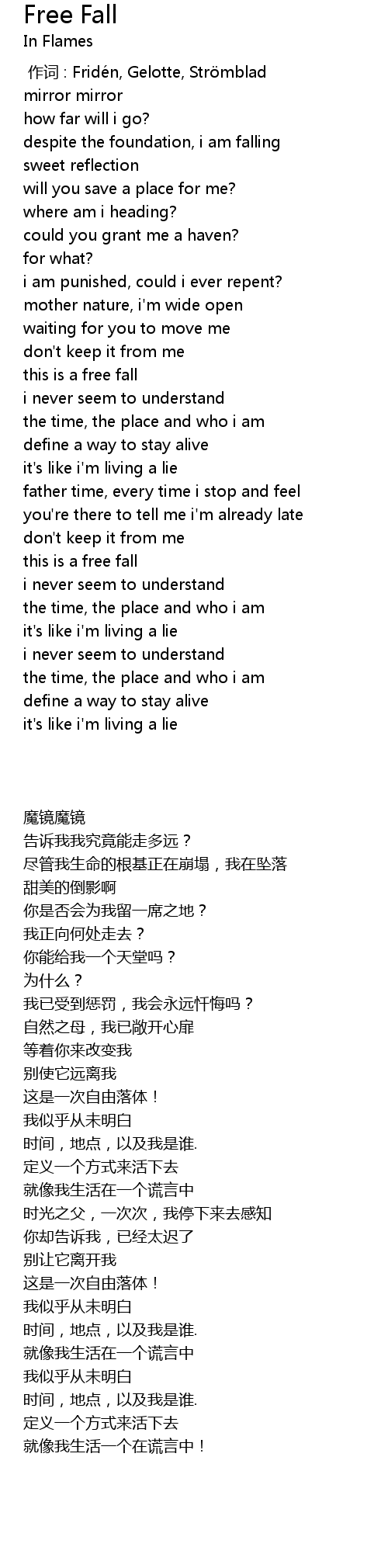 | [00:00.00] | 作词 : Fridén, Gelotte, Strömblad |