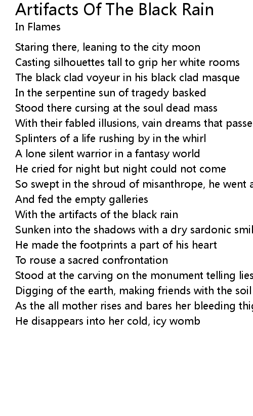 Artifacts Of The Black Rain Lyrics