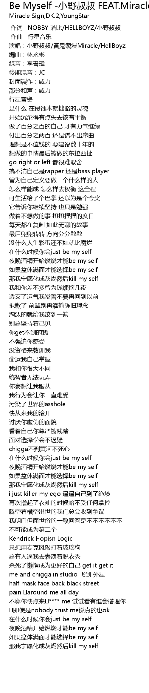 | Album | Be My Self 小野叔叔FT Miracle HellBoyz |