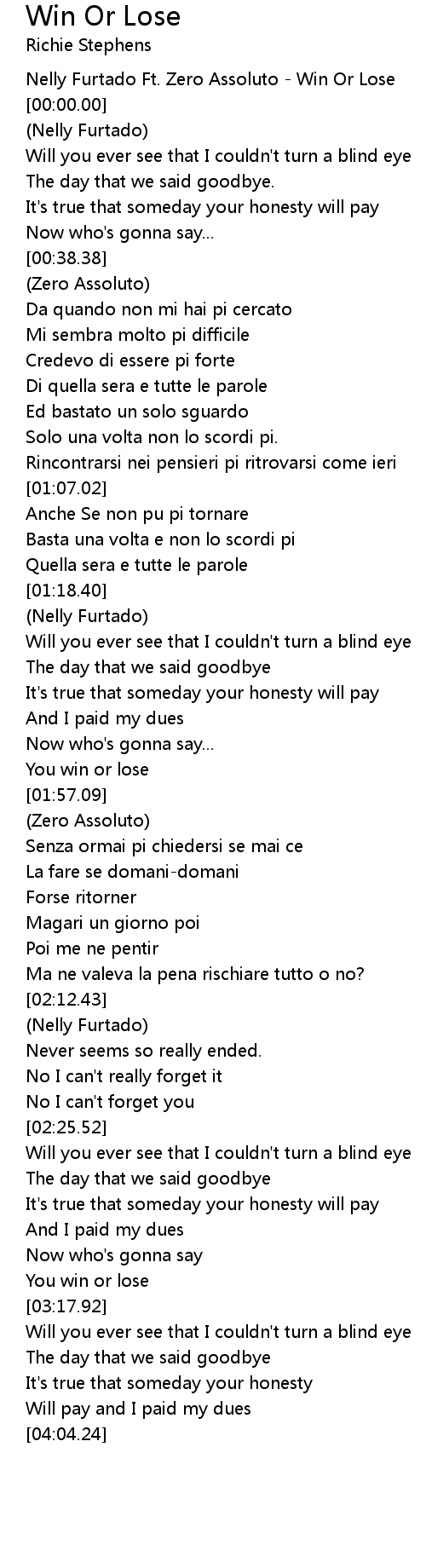Nelly Furtado Ft. Zero Assoluto - Win Or Lose |