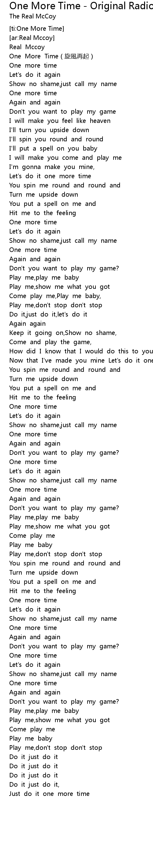| [00:05.156] | One More Time xuán fēng zài qǐ |