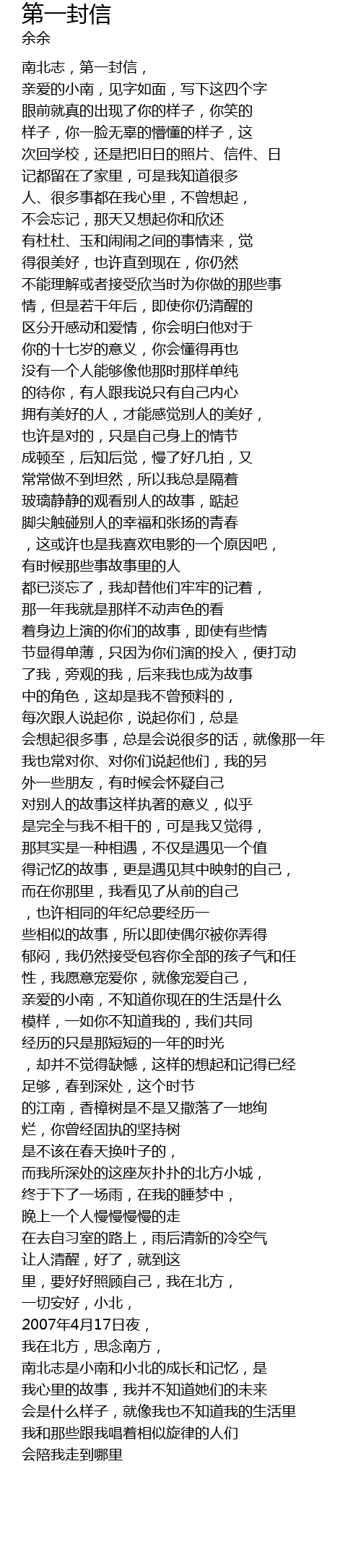 | [00:00.00] | nán běi zhì, dì yī fēng xìn, |