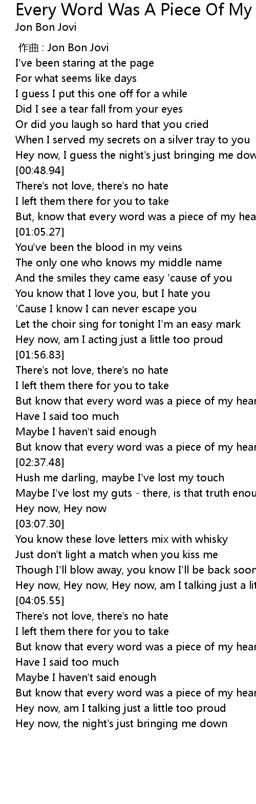 | [00:58.41] | But, know that every word was a piece of my heart |