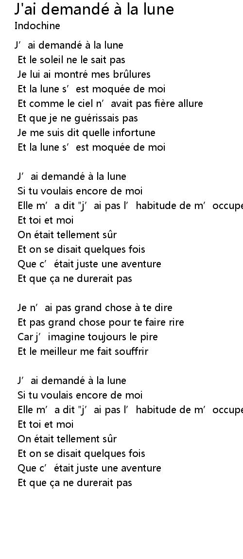 | Song | J'ai demandé à la lune |