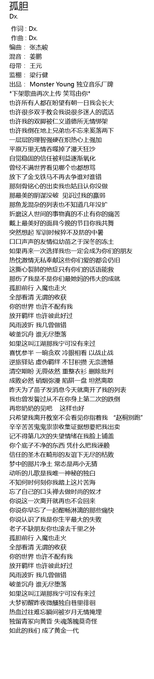 | [00:09.353] | 出品: Monster Young 独立音乐厂牌 |