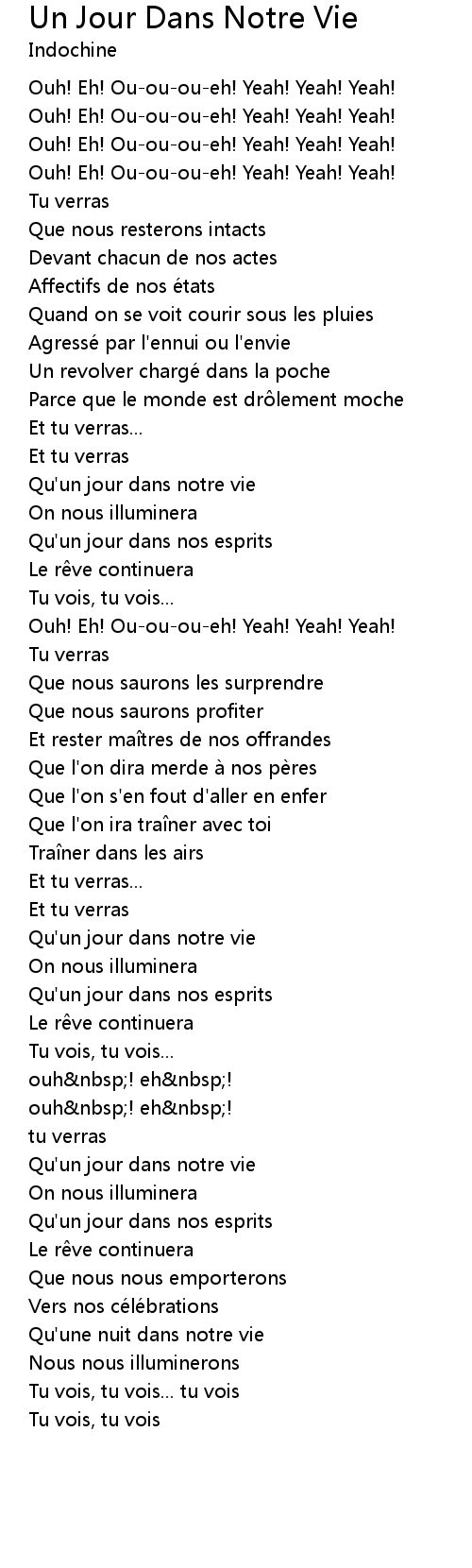 | Ouh! Eh! Ou-ou-ou-eh! Yeah! Yeah! Yeah! | |