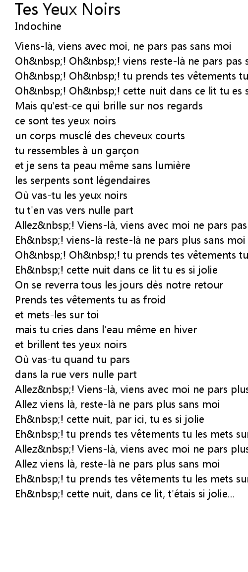 | Song | Tes Yeux Noirs |
