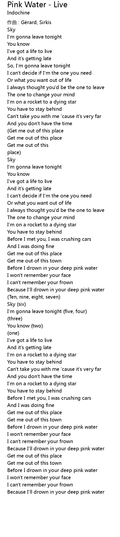 Pink Water - Live Lyrics