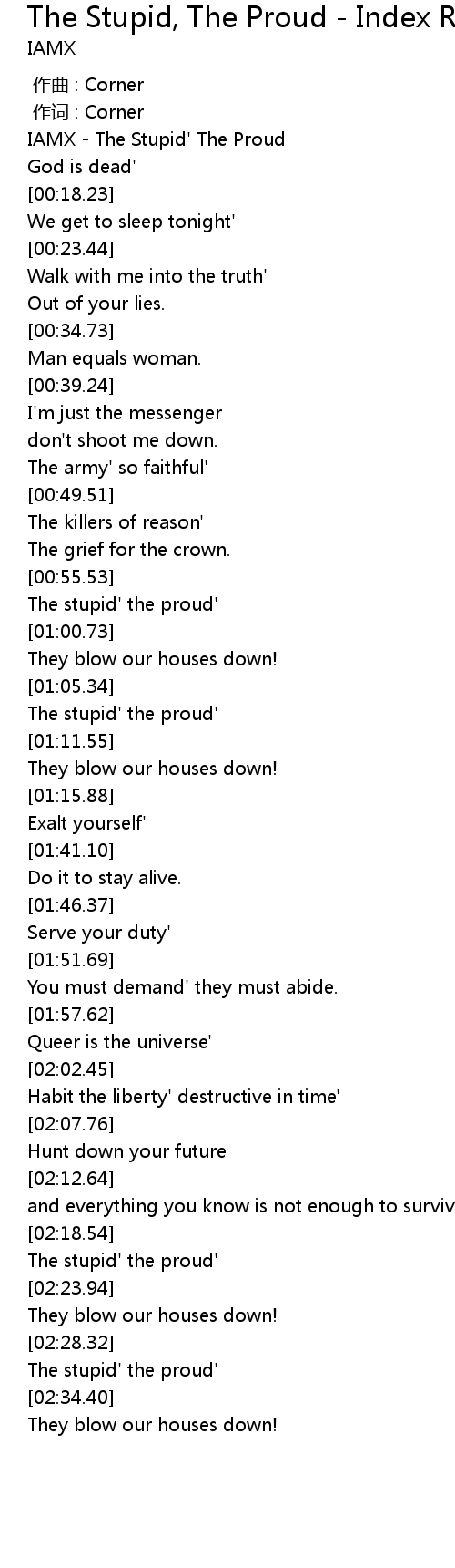 | [00:03.23] | IAMX The Stupid' The Proud |