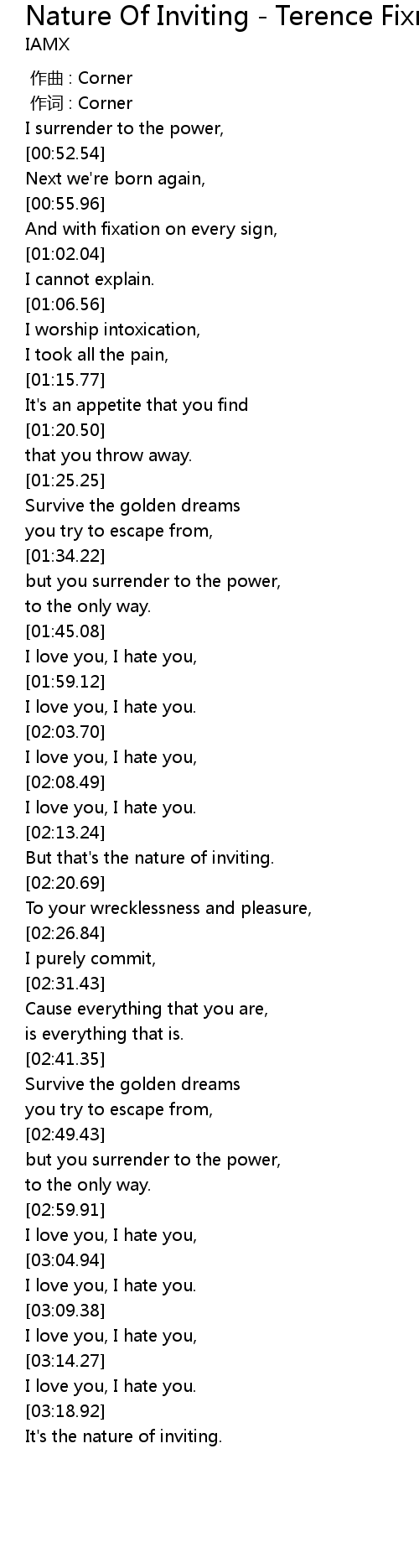 | Song | Nature Of Inviting - Terence Fixmer REMIX |