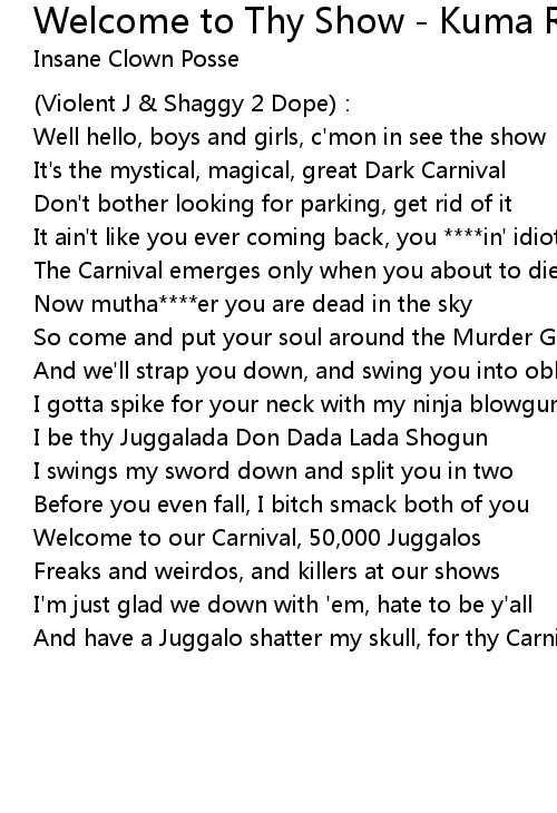 | And have a Juggalo shatter my skull, for thy Carnival |