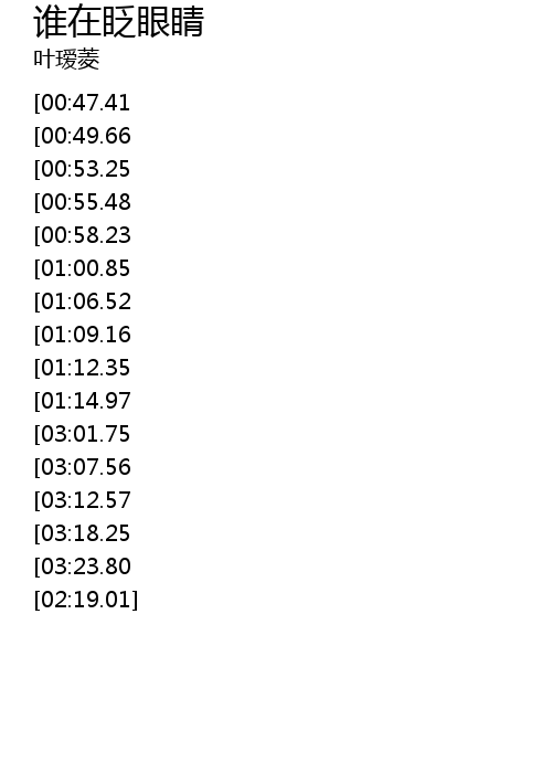| [02:29.82][00:49.66][00:15.26] | 是谁在眨眼睛 |