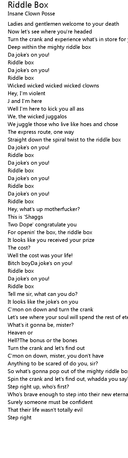 For openin' the box, the riddle box |