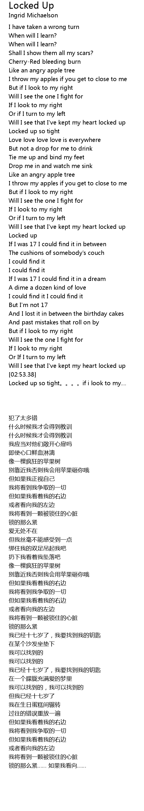 | [00:51.82] | Will I see that I' ve kept my heart locked up |