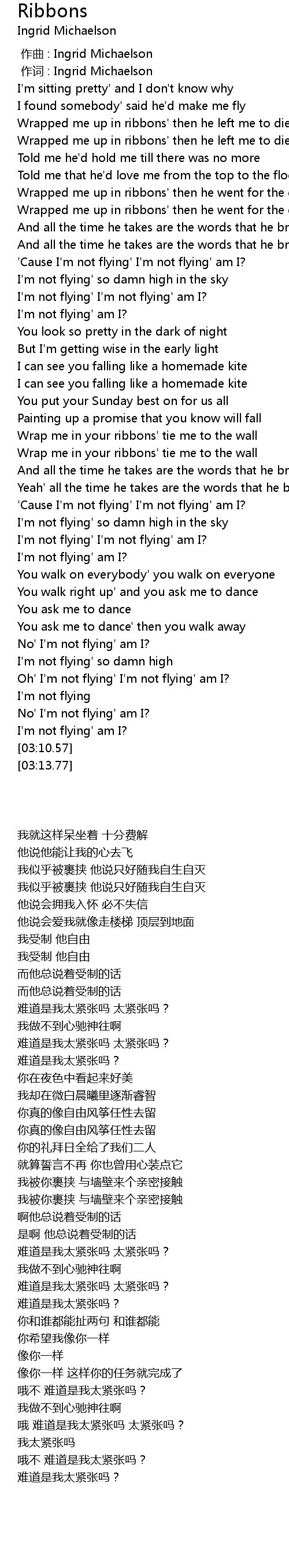 | [00:00.00] | 作曲 : Ingrid Michaelson |