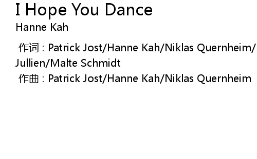 | [00:00.000] | zuo qu : Patrick Jost Hanne Kah Niklas Quernheim |