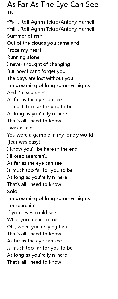 | Song | As Far As The Eye Can See |