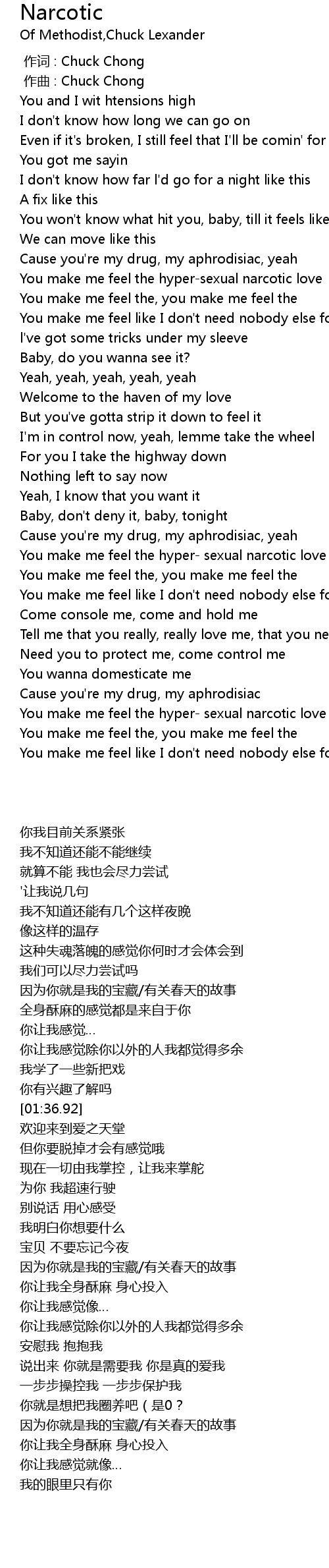 | [00:56.81] | You make me feel the hypersexual narcotic love |