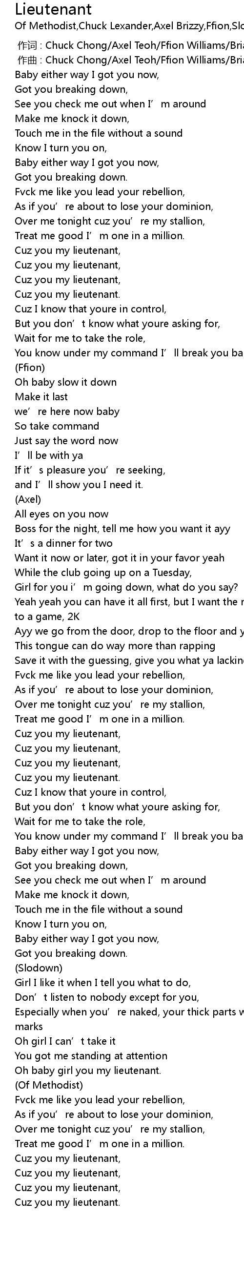| [04:04.12] | Oh baby girl you my lieutenant. |