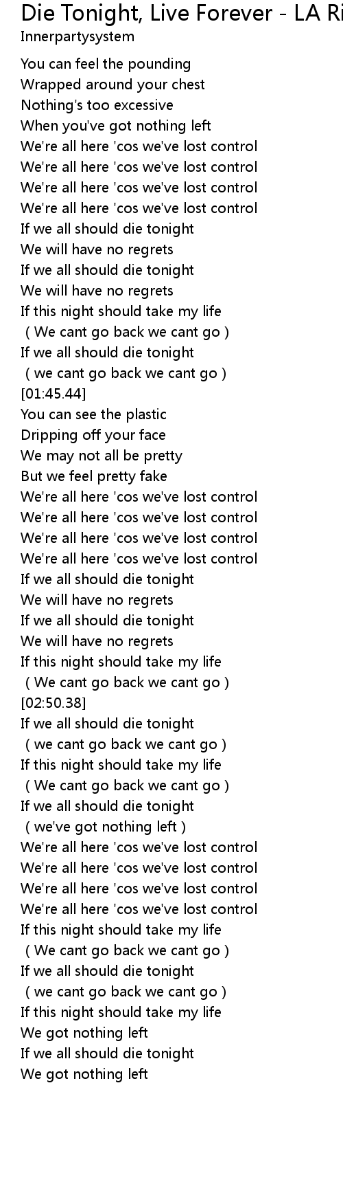 | Song | Die Tonight, Live Forever - LA Riots Remix |