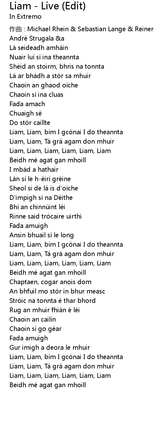 | Liam, Liam, bí m I gcó nai I do theannta | |
