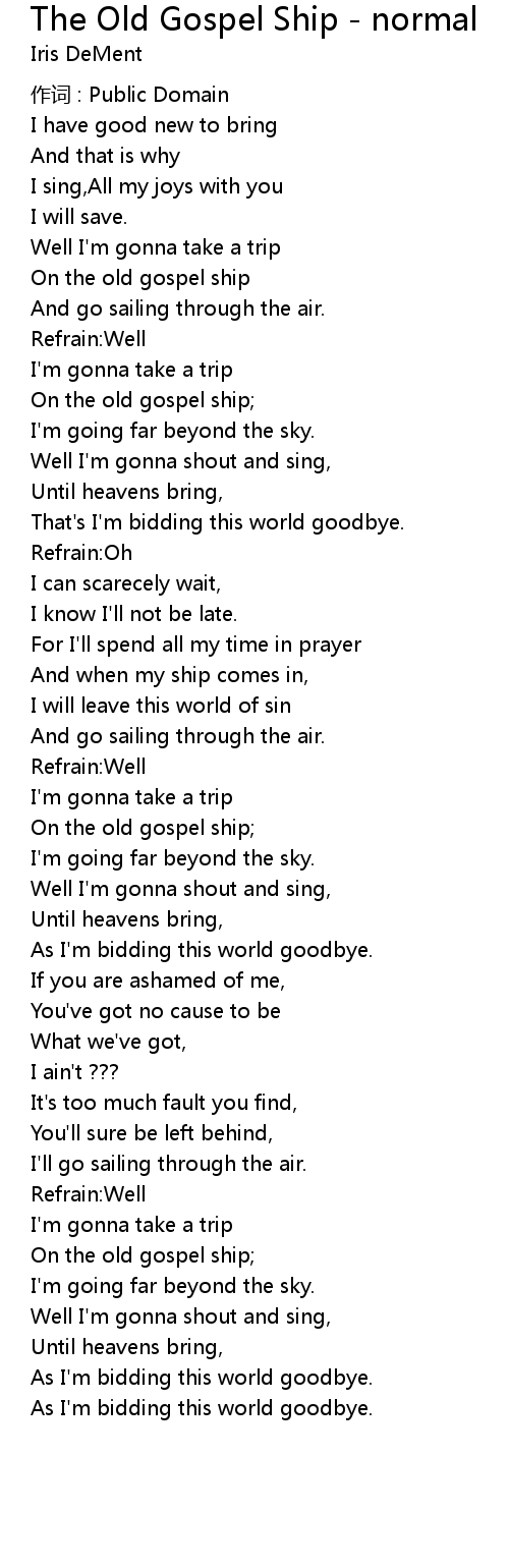 | Song | The Old Gospel Ship - normal |