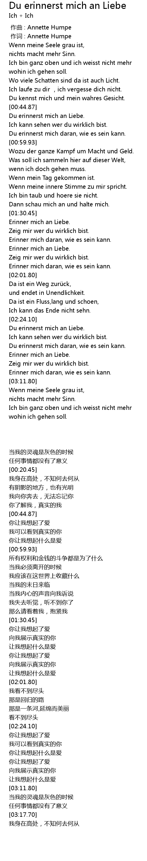 | [00:45.72] | Du erinnerst mich an Liebe. |
