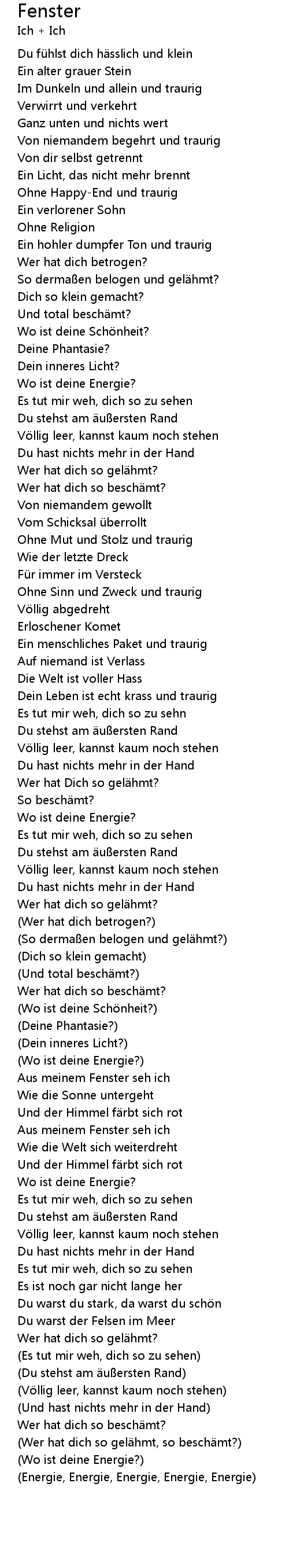 | (Wo ist deine Energie?) | |