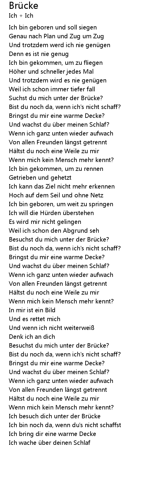 | Bist du noch da, wenn ich's nicht schaff? | |