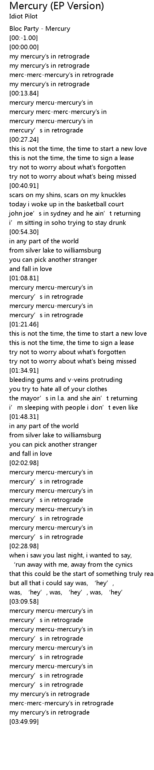 | [03:43.32] | mercmercmercury' s in retrograde |