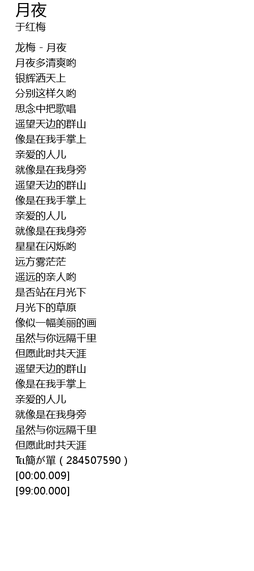 | [00:00.100] | 龙梅 - 月夜 |