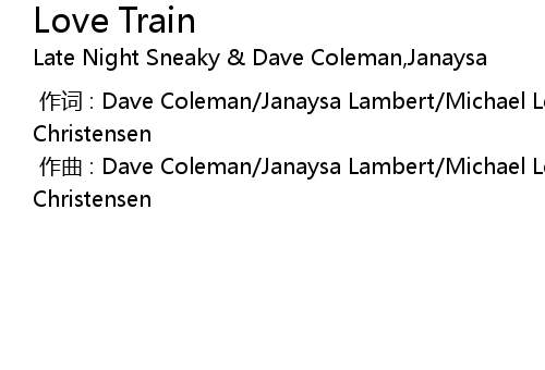 | [00:00.000] | 作曲 : Dave Coleman/Janaysa Lambert/Michael Levitt/Todd Christensen |