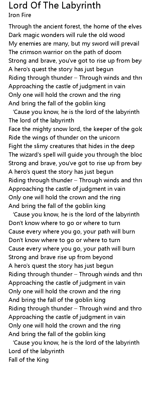 | ‘Cause you know, he is the lord of the labyrinth | |