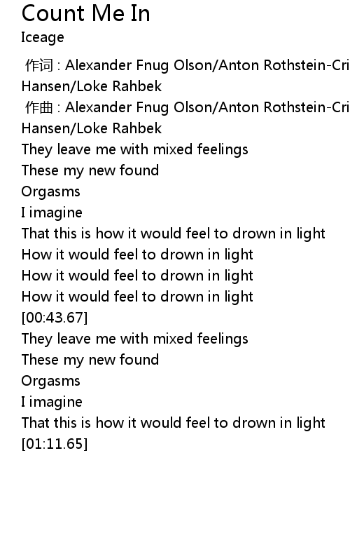 | [00:01.000] | zuò qǔ : Alexander Fnug Olson Anton RothsteinCristensen Bo H yer Hansen Loke Rahbek |
