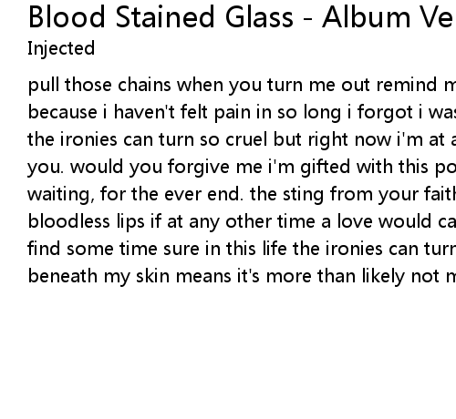 pull those chains when you turn me out remind me what this life is all about. because i haven't felt pain in so long i forgot i was alive sure in this life, the ironies can turn so cruel but right now i'm at a loss to find one to match you. would you forgive me i'm gifted with this poison pen. silently, lividly waiting, for the ever end. the sting from your faithless kiss still rings on my bloodless lips if at any other time a love would call you mine come around and find some time sure in this life the ironies can turn so true but the sin beneath my skin means it's more than likely not me but you. |