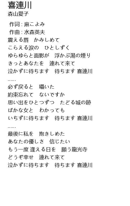 | [03:49.50] | 泣かずに待ちます 待ちます 喜連川 |