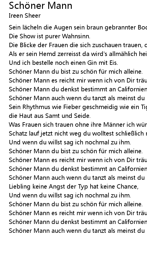 | Sch ner Mann auch wenn du tanzt als meinst du mich. | |