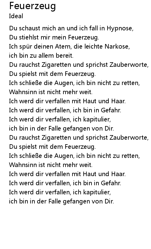 | Du rauchst Zigaretten und sprichst Zauberworte, | |