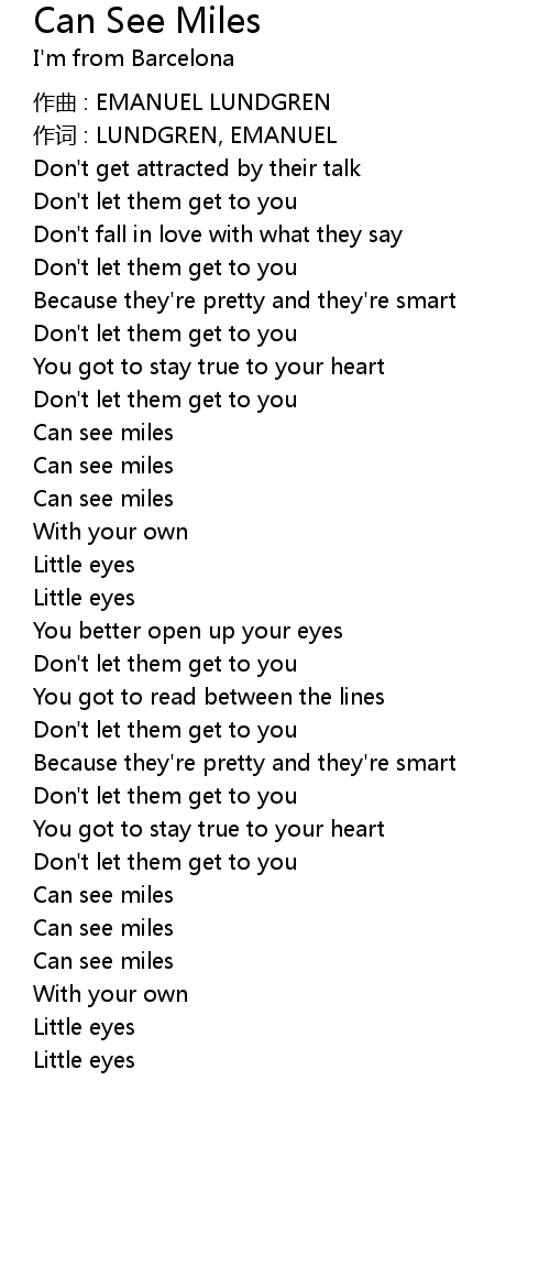 | 作词 : LUNDGREN, EMANUEL | |