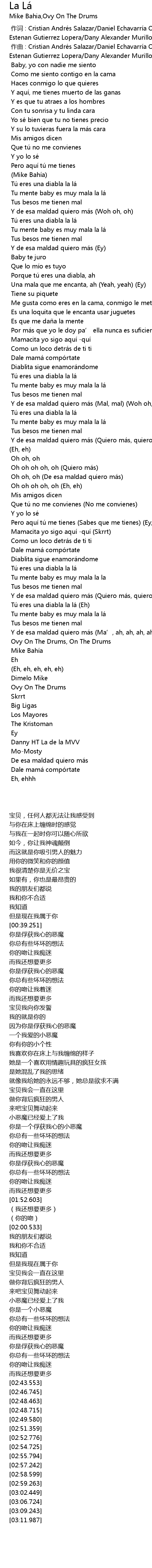 | [00:41.842] | Tu mente baby es muy mala la lá |