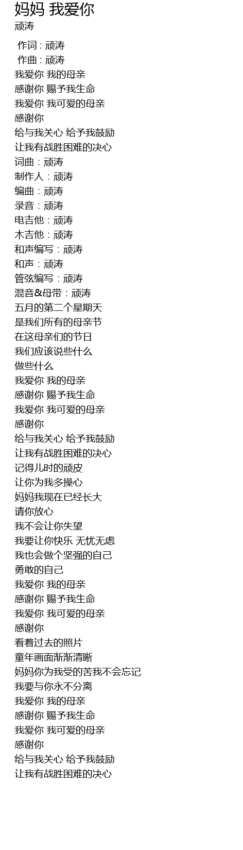 | Song | 妈妈 我爱你 |
