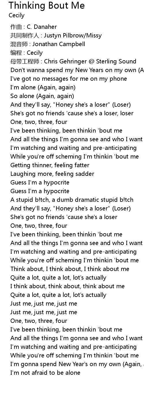 | [00:40.169] | I' ve been thinking, been thinkin ' bout me |