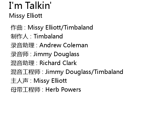 | [00:00.000] | 作曲 : Missy Elliott/Timbaland |