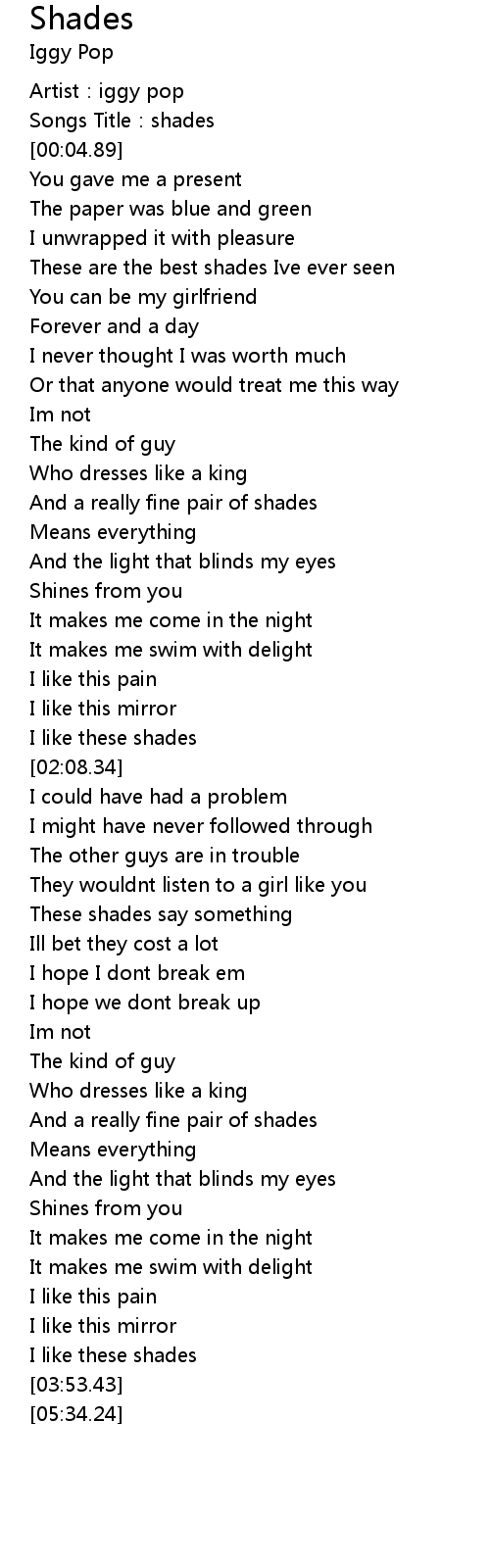| [02:44.72] | These shades say something |