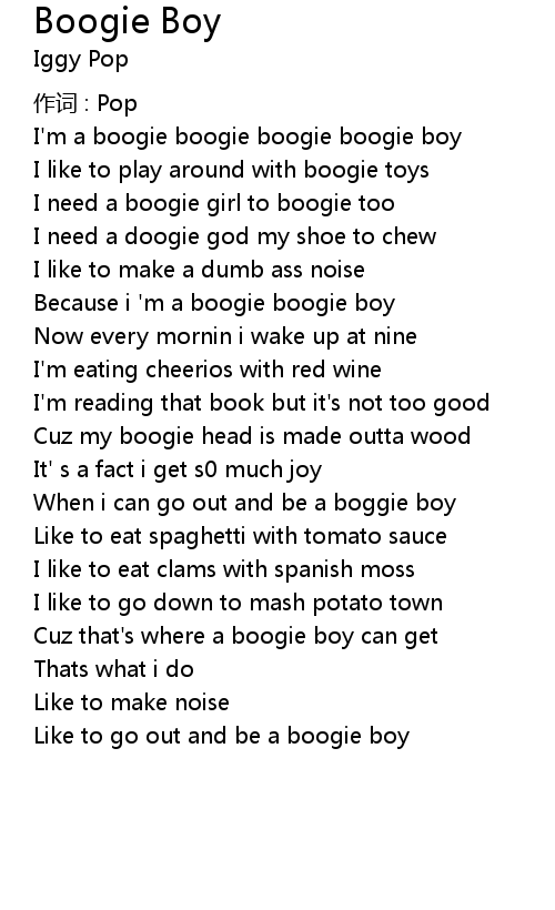 | I' m a boogie boogie boogie boogie boy | |