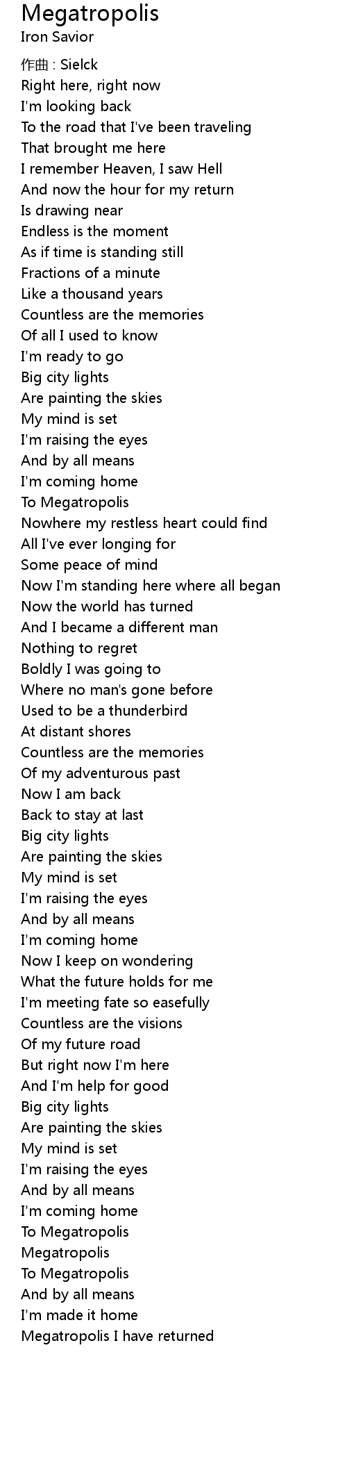 | Megatropolis I have returned |