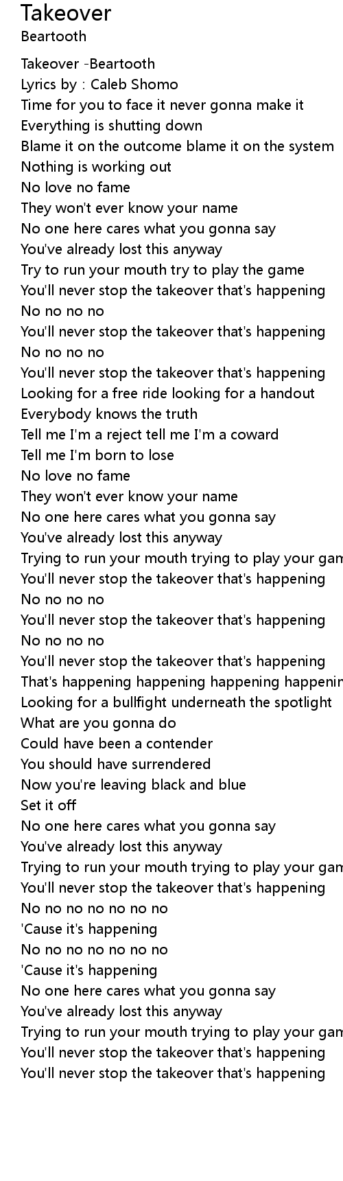 | [00:43.413] | You' ll never stop the takeover that' s happening |