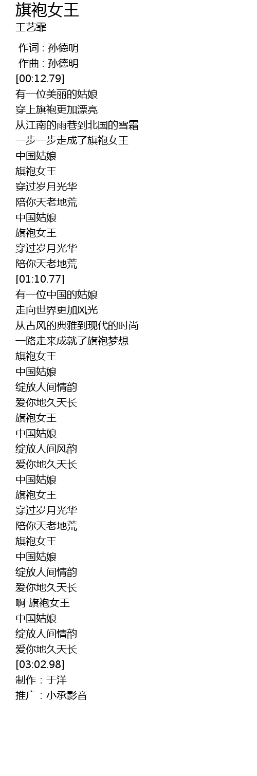 | [00:22.69] | 穿上旗袍更加漂亮 |