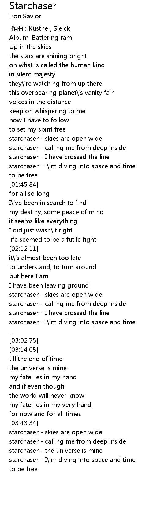 | [02:40.08] | starchaser - I\'m diving into space and time |