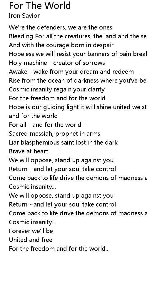 Hope is our guiding light it will shine united we stand to fight for the freedom and for the world |